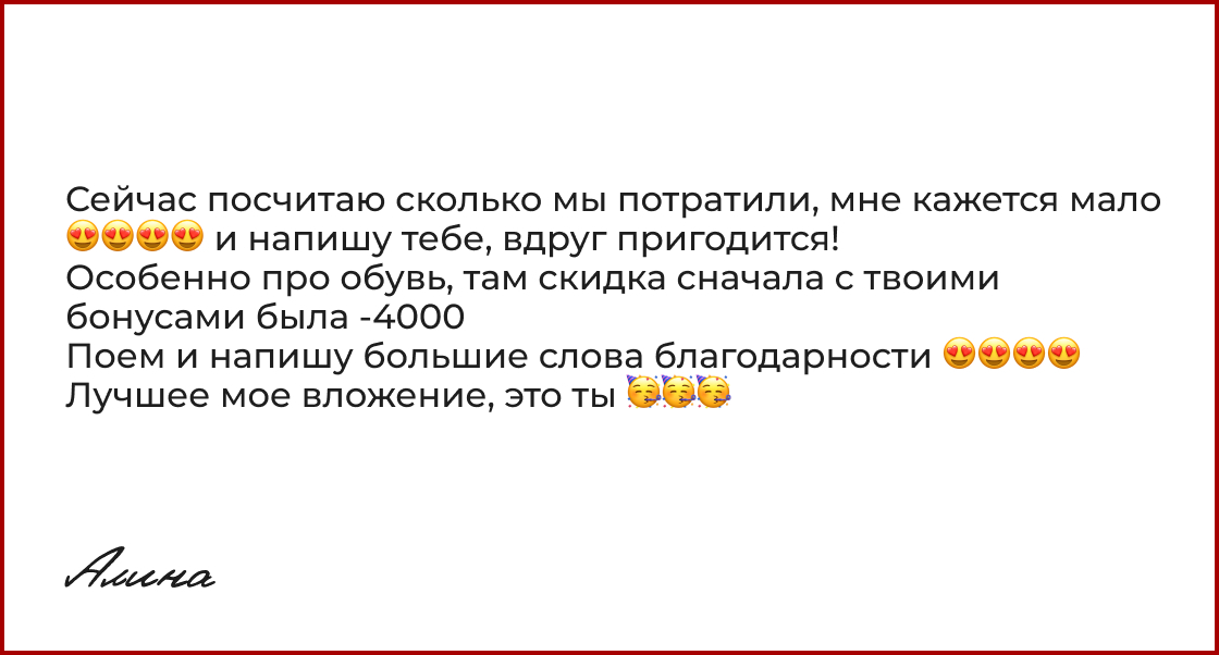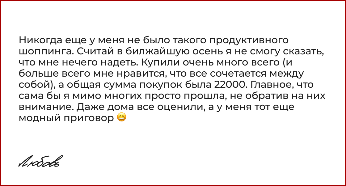 Перед совместным шопингом я делаю прешопинг в поисках лучших позиций именно для Вас.